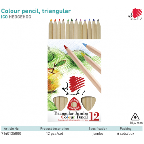 Colour pencil, jumbo triangular ICO HEDGEHOG 12 kom u pakovanju, 10,4 mm
